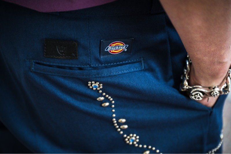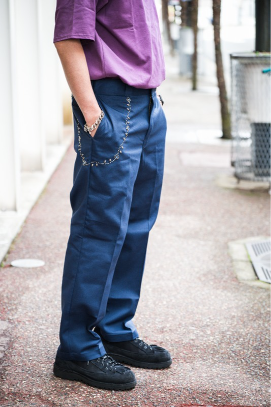 また、レザーアイテムやスタッズアクセサリーが人気のHTCと、ワークウェアブランド・DICKIESがコラボしたワークパンツも今季話題のアイテムです。