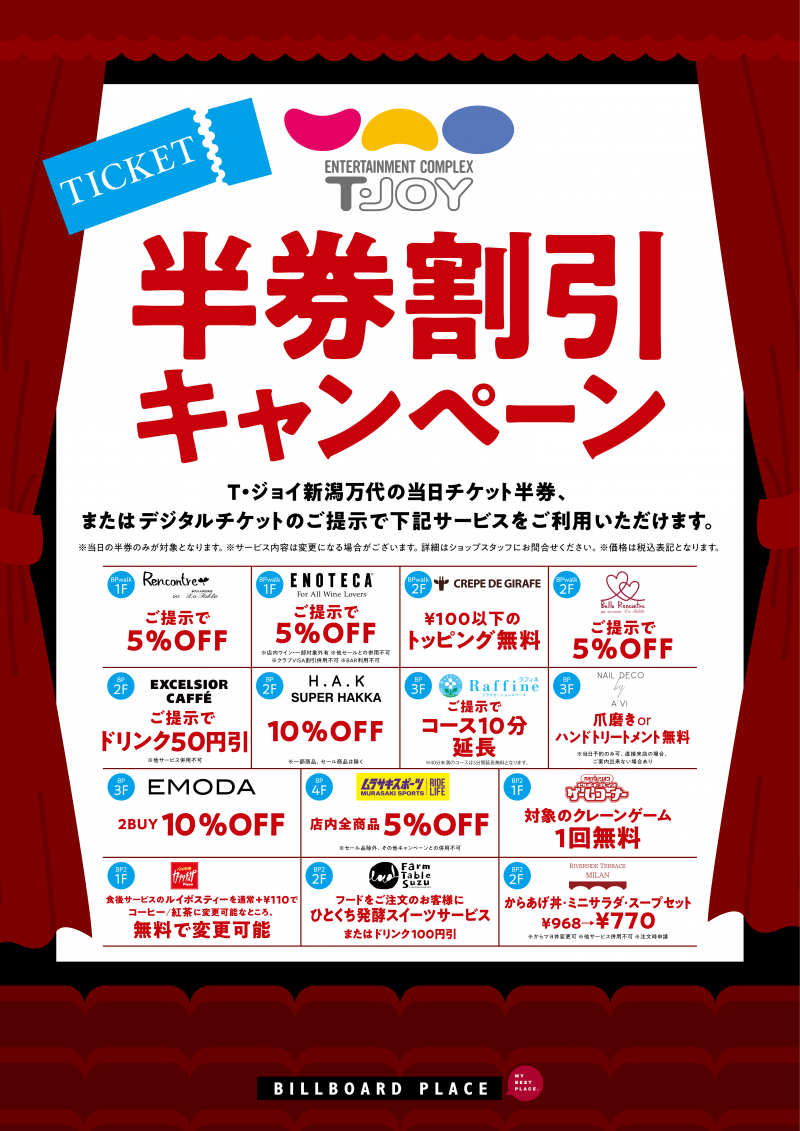 Tジョイ新潟万代 半券割引キャンペーン