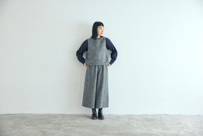 ▼麻とウールツイード かぶりベスト ¥18,700(税込)