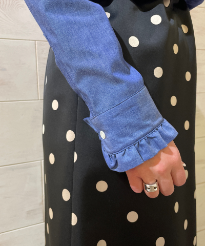 目を惹くようなドット柄スカート。