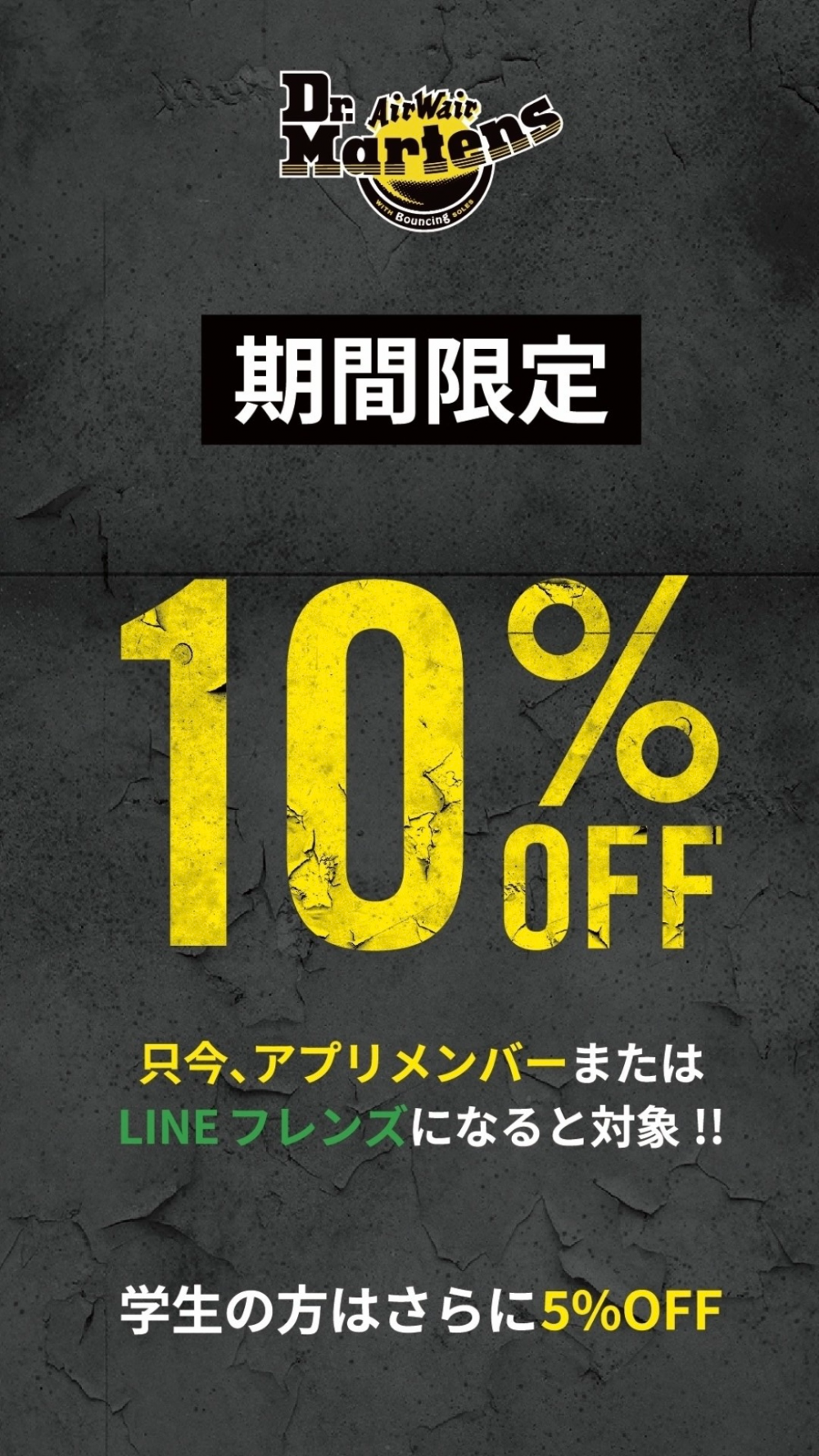 また、只今ドクターマーチンでは公式アプリメンバーとLINE公式アカウントのフレンズを対象に10%OFFキャンペーンを実施中です!!